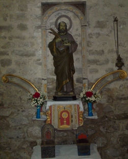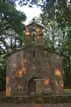 O mesmo sucede coa columna (que neste caso lembra a feitura dun miliario) que sostén o altar existente no exterior, xusto en fronte da porta principal da igrexa. Por certo, a lousa que fai de mesa de altar é a tapa dun sepulcro; conserva a inscrición co nome e apelidos, a idade e ata data de defunción da persoa, un home que morreu en 1902.