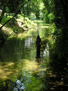 Fotografía: Nesta fotografía de Patricia Trigo inmortalizouse o intre marabilloso no que a moura do pego (escultura de Alberto Gulías) emerxía das augas do río.