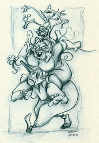 A moza posuída, a criatura segundo preferían chamarlle os demiños, tiña unha irmá de nome Carolina e se ós enredantes se lles antollaba facían que Carolina tivese que levar a irmá ás cabaliñas.