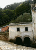 ©José Manuel Blanco Prado (http://www.galiciaencantada.com) _________ TÍTULO: Os muíños rústicos en Galicia (I) [Traballo publicado en: Revista Libredón, Centro Gallego de Santander, nº 35, 1991, D. L.: SA, núm.64-1979 ] Traducido ao galego polo autor. AUTOR: J. Manuel BLANCO PRADO. Foto. Barrio dos Muíños, Mondoñedo (Lugo). OS MUÍÑOS RÚSTICOS EN GALICIA (I). O muíño sempre foi un dos elementos maís vinculados á vida económica e social de Galicia. Dende o punto de vista económico disfrutou e aínda segue a disfrutar dunha gran importancia nalgúns lugares illados. Esta importancia está relacionada coa alimentación humana e a do gando. Relacionada con esta función económica, o muíño representaba un elemento de vida social sendo o centro de manifestacións folclóricas. Para realizarmos unha análise xeral sobre o muíño rústico galego cómpre que distingamos os seguintes aspectos: I. OS TIPOS DE MUÍÑOS. II. O RÉXIME DE PROPIEDADE DOS MUÍÑOS. III. O FOLCLORE NO MUÍÑO. IV. AS PRÁCTICAS MÁXICAS EN TORNO Ó MUÍÑO. I. OS TIPOS DE MUÍÑOS. Como a forza motriz usada para o seu funcionamento era diversa , podemos establecer unha serie de muíños tradicionais segundo a orixe desas forzas. 1.- OS MUÍÑOS DE MAO. Era o sistema máis tradicional. Nesta modalidade distinguimos “o muíño circular”, do que temos interesantes referencias por medio dos innumerables restos atopados nos castros. Este muíño tiña dúas pezas: unha delas, a superior, xiraba sobre a inferior. Este movemento facíase coa axuda dun pao cravado perpendicularmente á “moa” – peza superior- sendo accionado directamente tirando o brazo. Este tipo de muíño, logo da súa etapa inicial, empregouse para moer o grao de millo para os animais, debido á imposibilidade de facer unha fariña fina. 2.- OS MUÍÑOS HIDRÁULICOS. Nesta modalidade é necesario facer alusión a tres tipos: os muíños de rodicio horizontal, as aceas e os muíños de mar. 2.1. OS MUIÑOS DE RODICIO HORIZONTAL. Estes muíños están situados á beira dun río ou arroio, mesmo poden estar alonxados deste. En ocasións, estes muíños posuían un leito de lonxitude abonda, inciado na presa, case sempre formada por unha escolleira de laxas ou pedras de pizarra. Polo xeral, a auga ó chegar ó muíño queda a maís altura, xa que ten que coller a forza necesaria para poñer en acción o mecanismo de rotación, é dicir, logo de que se abre o paso da auga dende o interior do muíño, ésta entra e vai impulsar “ó rodicio”, roda horizontal que transmite o movemento ás demais pezas que forman o sistema mecánico. Do rodicio xorde un eixo vertical, chamado “veo”, “vara” ou outros nomes (etc), que atravesa as pezas de trituración: “o pé”, pedra inferior fixa e a “moa ou capa”, que xira sobre a anterior. As dúas pedras nas que o grao vai convertíndose en fariña, adoitan ser feitas de granito. Non embargantes, éste ten que ser moi especial, xa que se resulta brando por exceso de feldespato, desgástase ó moer e enche a fariña de areas; pola contra, se é duro pulveriza a fariña de xeito excesivo algo que nunca foi aconsellable para a feitura do pan. A parte alta do artificio de moer chámase “moega ou moxega”, e consiste nun tronco de pirámide invertido no que se coloca o grao, que é movido por unha variña de madeira para que vaia caendo na proporción que as moas o requiran, segundo o seu tamaño e a forza da auga, nunha pequena canle de madeira chamada “caneta ou quenlla”. Ligados a estes dous elementos hai uns mecanismos sinxelos e graduables, que ó mover “a caneta” deixan ir o grao polo oco da “moa”. Nos muiños maís sinxelos, chamados de “quendas ou roulós”, a fariña caía directamente ó tremiñado(1). Pola contra, nos muíños maís amplos e complexos, denominados nalgúns lugares “maquieiros”(2), a fariña recollíase nunha caixa colocada no “pé”. Nos últimos muíños deste tipo era moi común o uso de “peneiras”, de maneira que a fariña xa caía peneirada na caixa. 2.2 AS ACEAS. Este tipo de muíños tiña unha roda motriz vertical, que recibía o nome de “bruia”. Ésta podía recibir a au